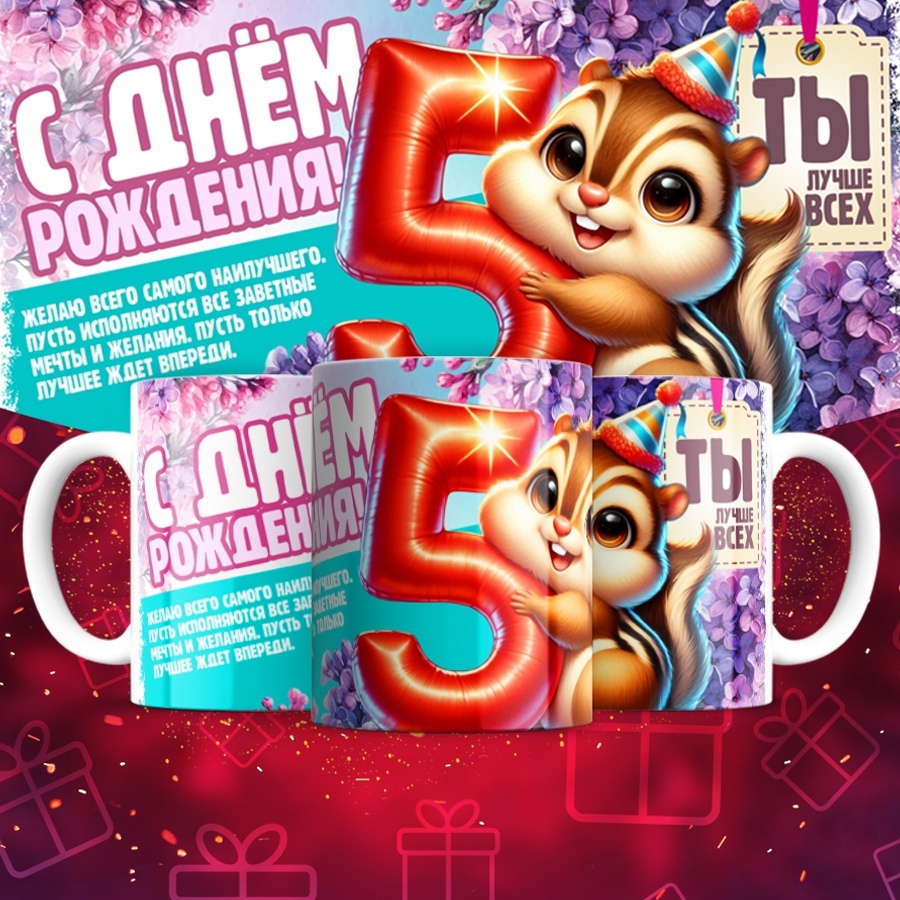 Кружка с фото С днём рождения, 3 года / 5