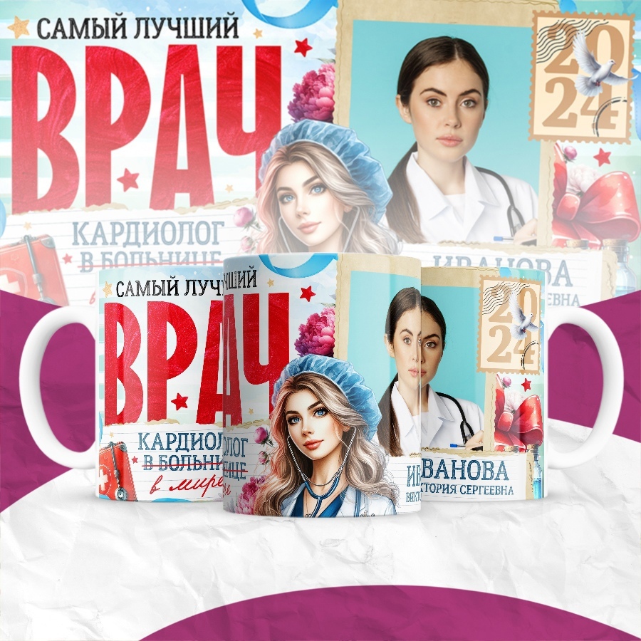 Кружка изготовлена из керамики, имеет объем 330 мл., Специализацию врача можно менять.