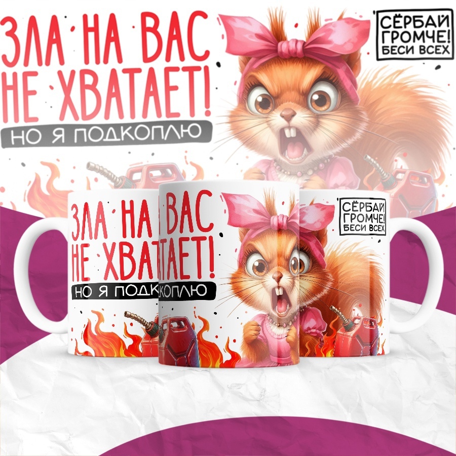 Кружка 'Зла на вас не хватает' - это товар, который привнесет немного юмора в вашу столовую посуду. Сделана из высококачественного керамики, эта кружка прекрасно подойдет для ежедневного использования. Ее объем позволит насладиться любимым напитком, а стильный дизайн с надписью 'Зла на вас не хватает, но я подкоплю' добавит радости в вашу жизнь. Кружка ярко выражает ваше настроение и поднимает настроение окружающих. Будьте готовы к волне улыбок и смеха, когда ваши друзья и близкие увидят эту кружку. Дарите ее в подарок своим близким или просто используйте для себя - в любом случае, она станет отличным дополнением к вашей коллекции посуды. Приобретите кружку 'Зла на вас не хватает' и наслаждайтесь каждым глотком с хорошим настроением!